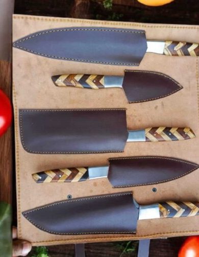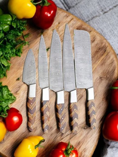 The Custom 5-Piece Damascus Kitchen Knife Collection