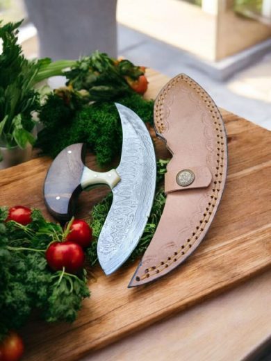 Precision Chopping: Damascus Ulu Kitchen Knife